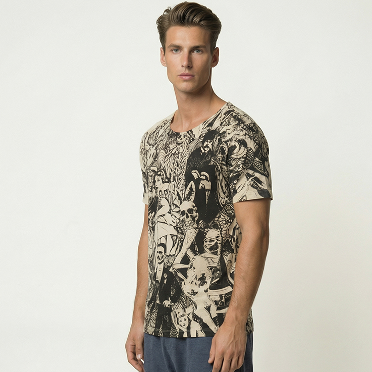 The White Rabbit Circus – Tea Color T-Shirt features a one-color screen print on premium washed cotton jersey. Each piece develops subtle tonal variations through the garment-washing process, making every shirt unique. Designed with a regular fit and crafted for everyday wear, it combines artistic identity with long-lasting comfort.