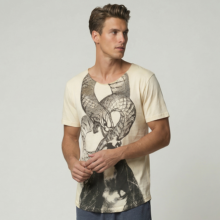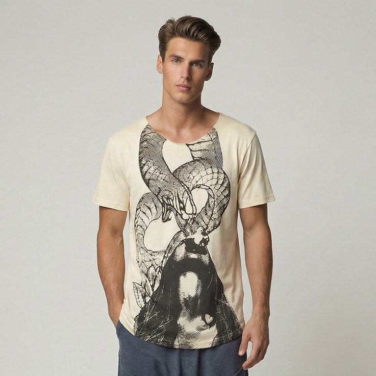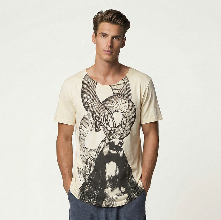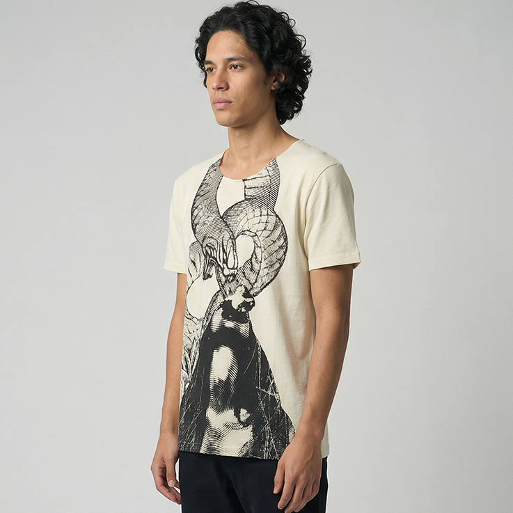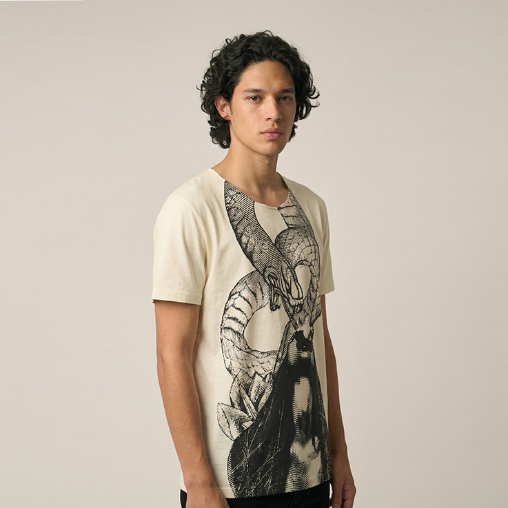 The White Rabbit Original Sin – Tea T-Shirt combines a one-color screen print with washed cotton jersey for a refined, understated look. Garment washing gives each piece a distinctive tonal effect and a naturally soft texture.